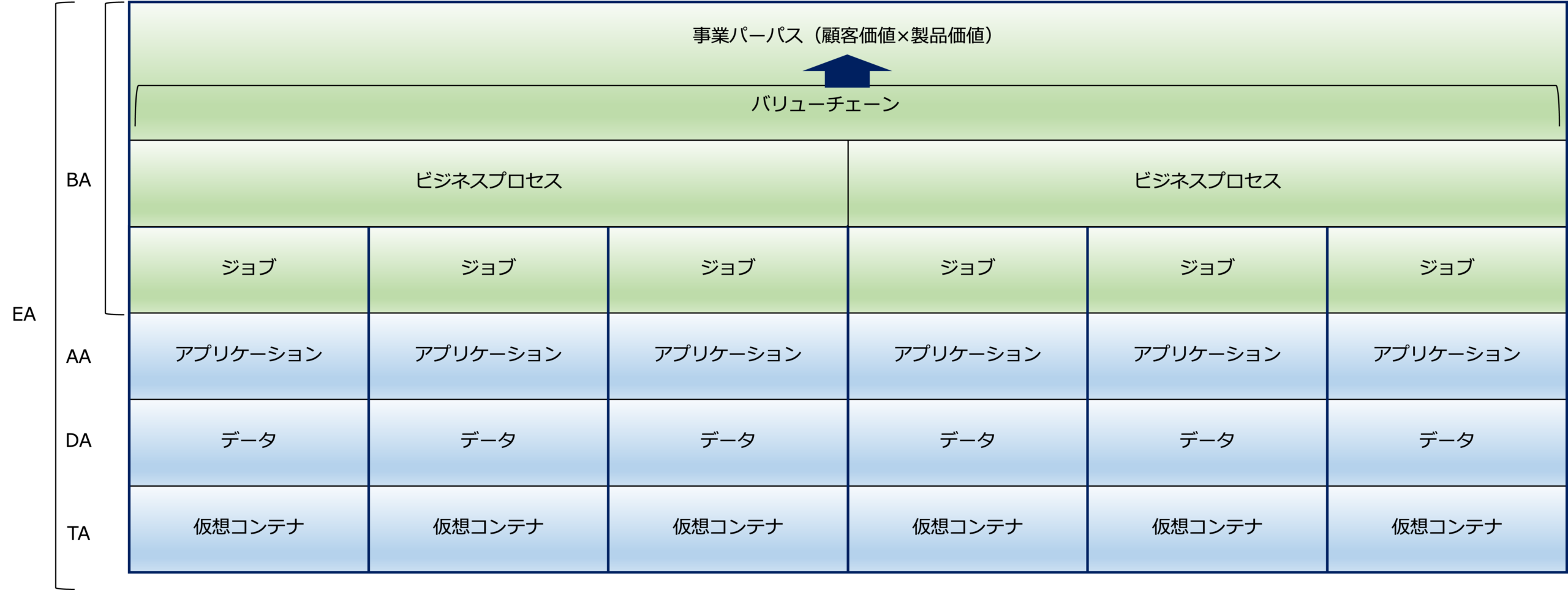 EAの一要素であるビジネスアーキテクチャでは、企業のジョブ(職務)と、それらをつなぐビジネスプロセスを分析します。