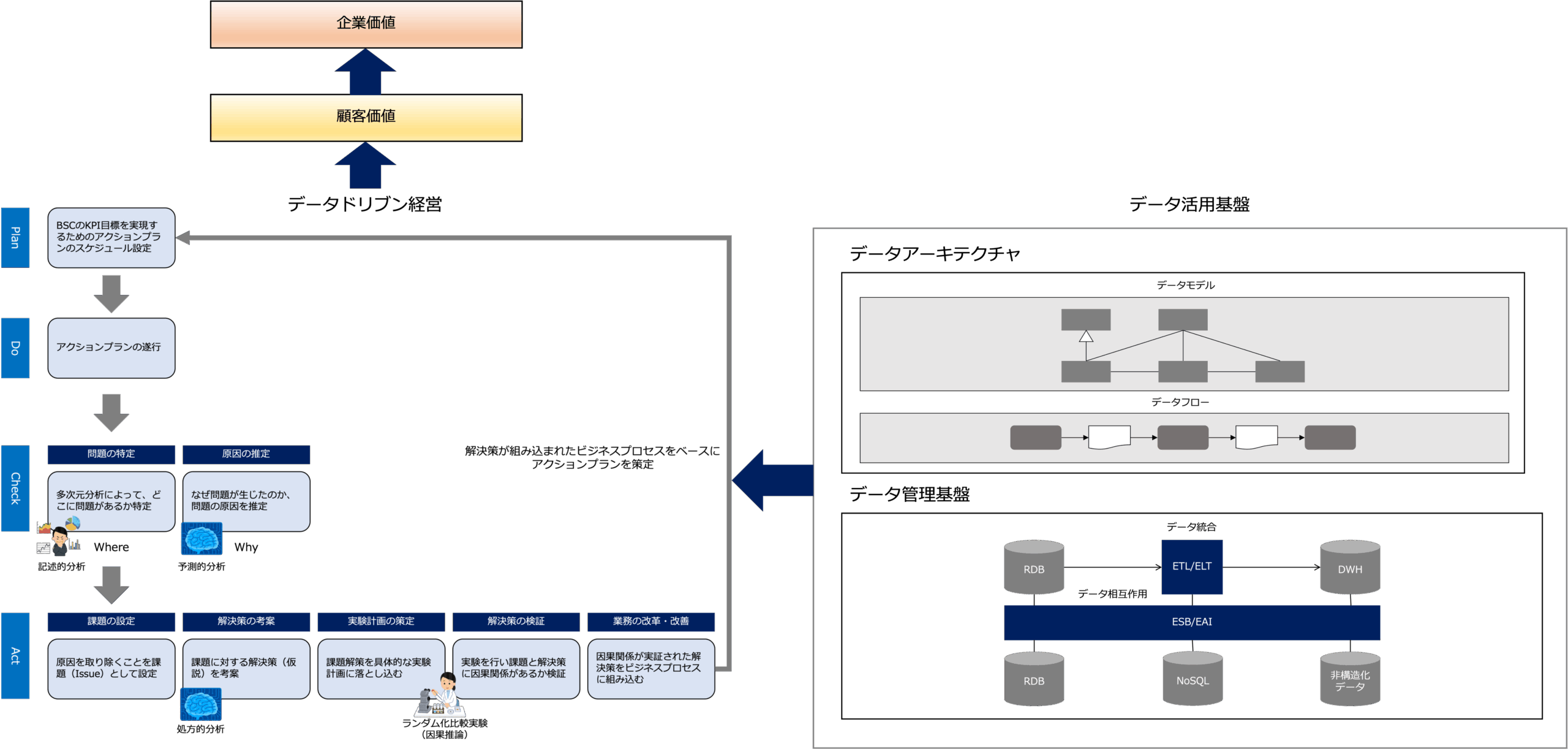 ここでは、データドリブン経営について、次の観点で説明します。 データドリブン経営とは データドリブン経営のマネジメントサイクル データドリブン経営と業務改革・改善 データドリブン経営とは データドリブ …