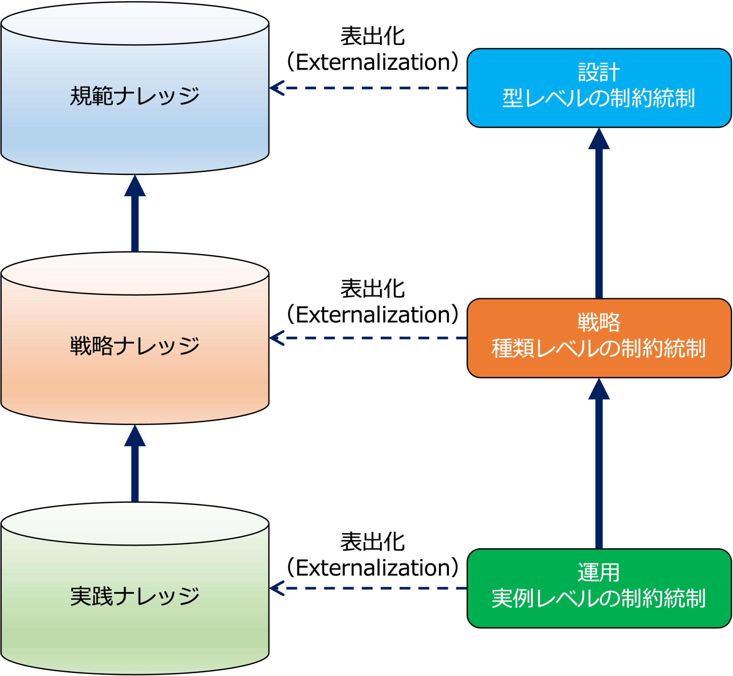 この制約を統制する過程で解決された統制方法が業務改革・改善の実践ナレッジ、戦略ナレッジ、規範ナレッジとして蓄積されます。